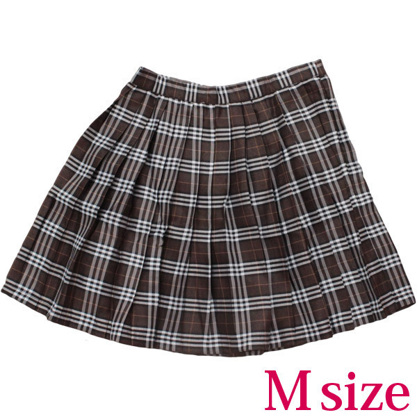 チェック柄プリーツスカート単品 ブラウン M