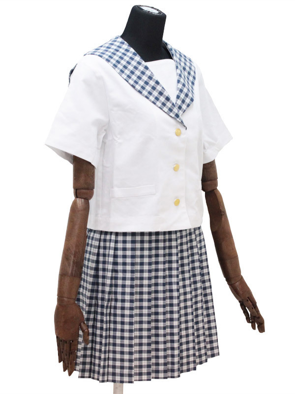 白と紺のギンガムチェック柄がラブリー!私立学園に通うお嬢様風のセーラー服。