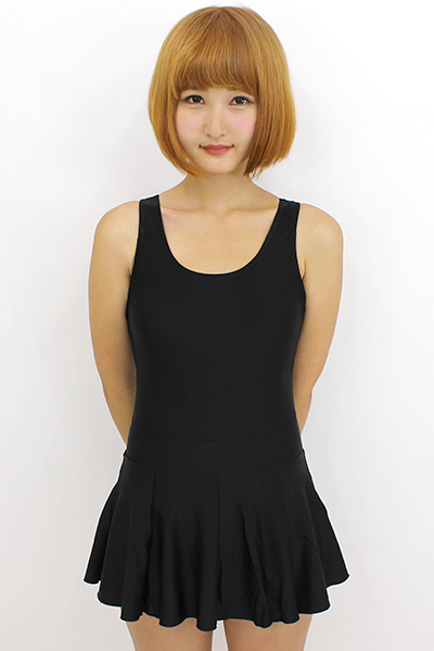 パッド付きの本物スカート付きスクール水着 黒 L
