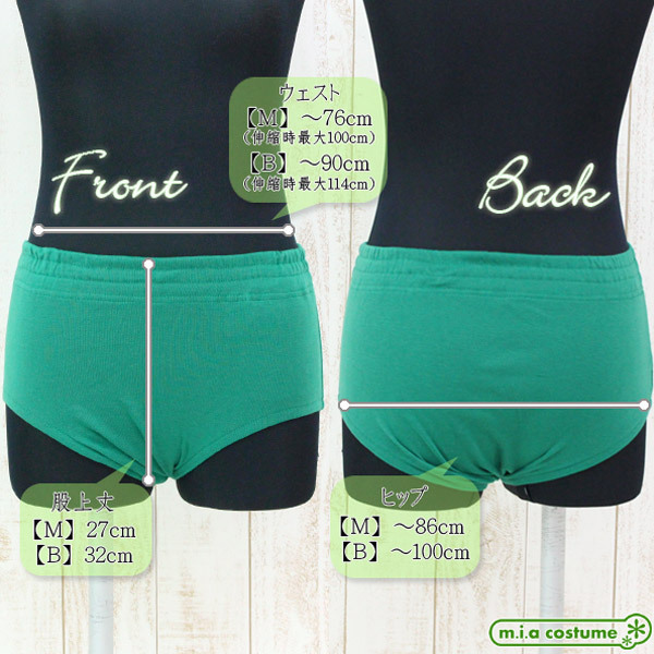 人気のブルマ単品に鮮やかなグリーンカラーが登場!無地のシンプルデザインで制服や体操着コスプレほか日常インナーとしての使用も可能。