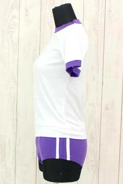 シンプルな体操着にパープルカラーを取り入れた可愛い体操服コスプレ♪このほかにも様々なカラーバリエーションをそろえておりますので、そちらも是非あわせてご覧くださいませ。