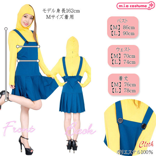 黄色と青のカラーリングが特徴的!某人気キャラをイメージした長袖仕様の可愛いデニム風一体型ワンピース(背面ファスナー式)。