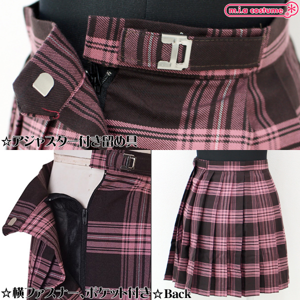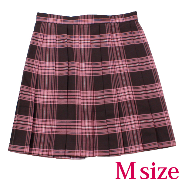 ポケット付きのチェック柄プリーツスカート単品 ピンク×ブラウン Mサイズ