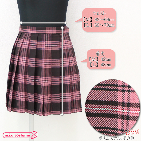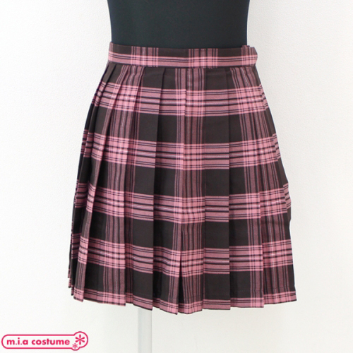 ピンク×ブラウンのカラーリングが可愛いチェック柄のプリーツスカート単品。