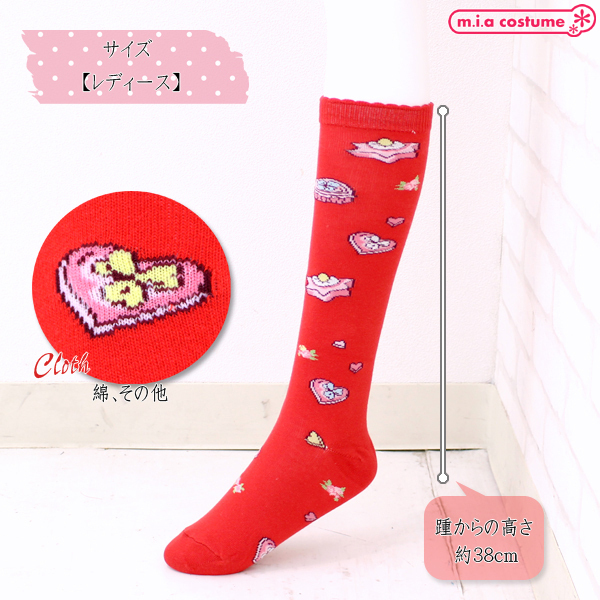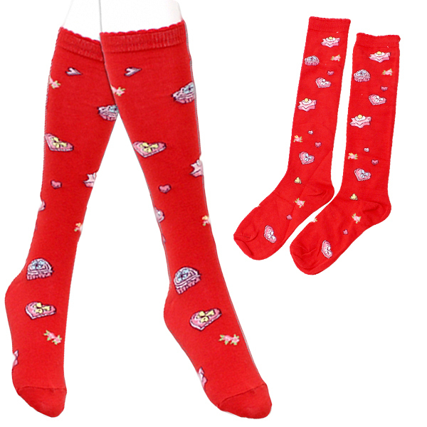 クッキー柄ロリータハイソックス単品 赤