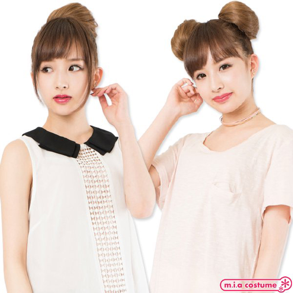 着脱式のおだんごウィッグで簡単イメチェン♪サイズ調節のアジャスターが付いていて使い勝手は抜群!二つ使えばキュートなクマさんヘアーにも♪ライブやテーマパークへのおでかけにもおススメ!誰でも盛れちゃうおだんごウィッグで、明るめの地毛に馴染みやすいです。