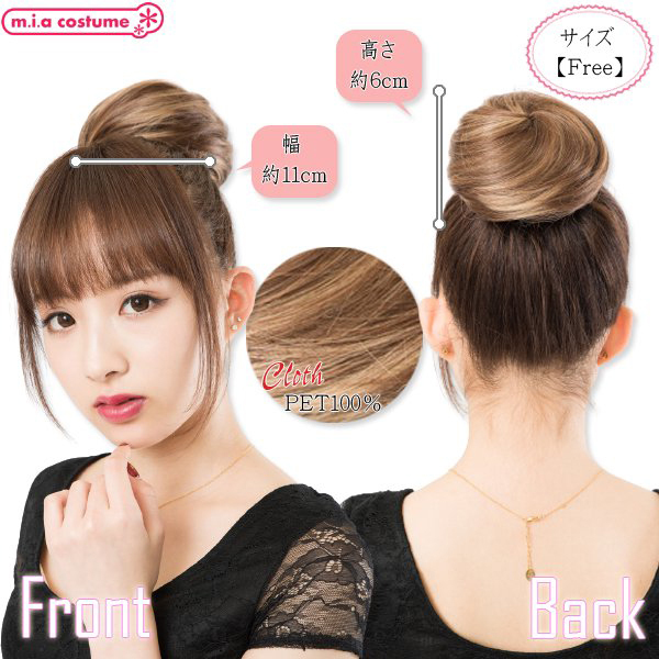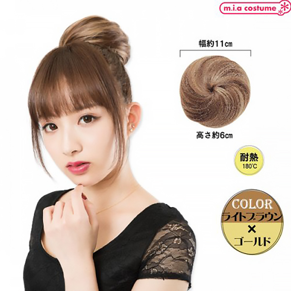 着脱式のおだんごウィッグだから簡単にイメチェンができる♪サイズ調節用のアジャスター付きで使い勝手は抜群!二つ使えばキュートなクマさんヘアーにも♪ライブやテーマパークへのおでかけにもおススメ!ポイントカラーが可愛いライトブラウン×ゴールドです。