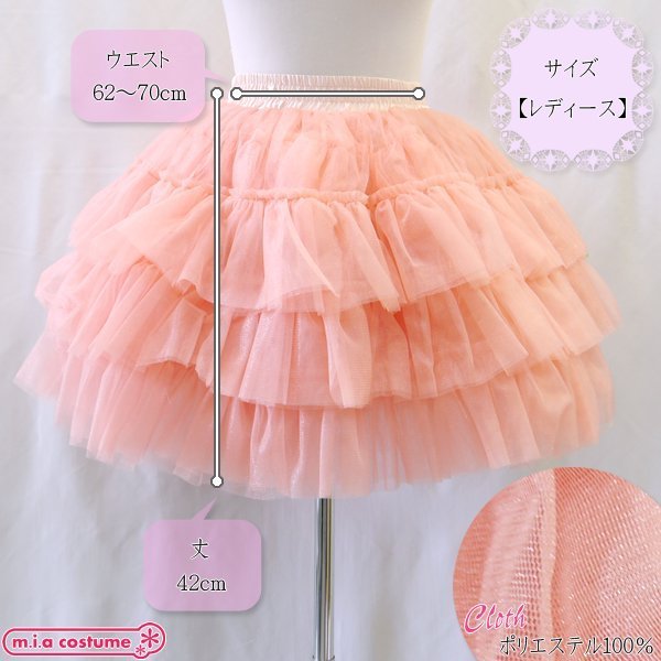 フリーサイズ:W62〜70cm・着丈42cm セット内容:パニエ単品(3段フリル) 素材:ポリエステル100%
