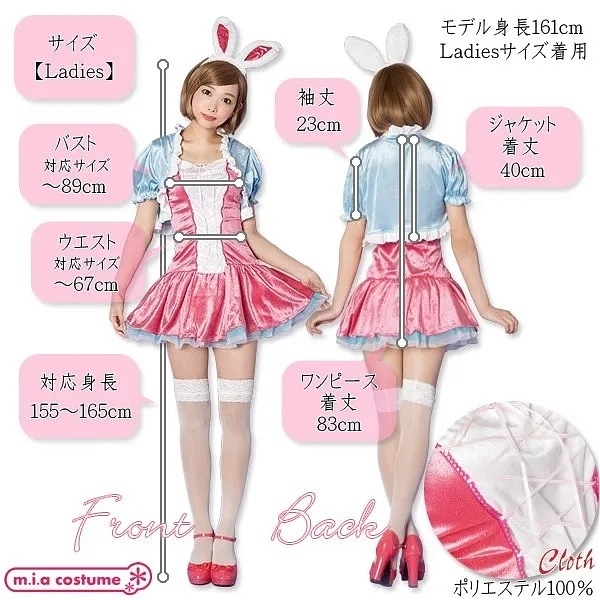 Ladiesサイズ(モデル身長161cm):B〜89cm・W〜67cm・身長155〜165cm・袖丈23cm・ワンピース着丈83cm・ジャケット着丈40cm セット内容:カチューシャ、ジャケット、ワンピース(背中心ファスナー) 素材:ポリエステル100%