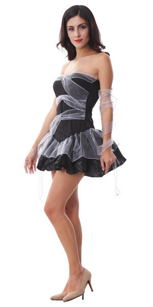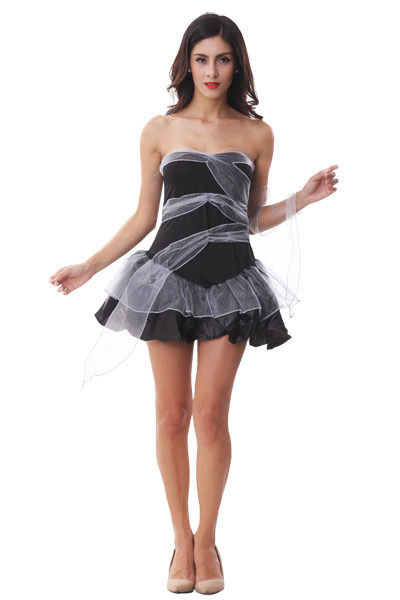 ダークなブラックカラーのベアトップワンピースに巻いたオーガンジーリボンでミイラの包帯をイメージ!腕にぐるりと巻きつけられるよう、単品リボンもセット。