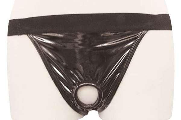 艶やかな光沢を放つエナメル素材を使用したメンズ用Oバック。