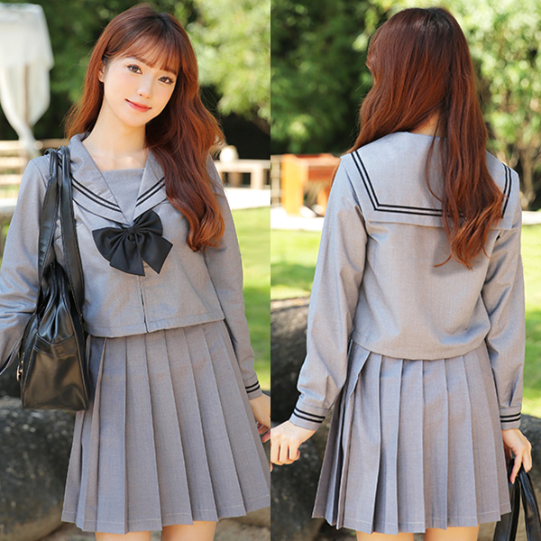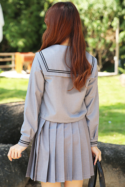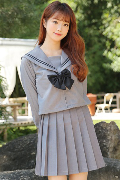 人気ブランドmalymoonから登場!グレーカラーでシックに仕上げた2本の黒ライン入り長袖セーラー服。